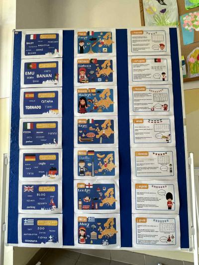 Na korytarzach zapoznawali się z ciekawostkami dotyczącymi języków, zamieszczonymi na gazetkach. Podczas lekcji poznawali państwa Europy, ich flagi, uczyli się z prezentacji o Union Jack, powtarzali nazwy narodowości w języku angielskim, ćwiczyli podstawowe słówka w różnych językach, takich jak: angielski, niemiecki, francuski, hiszpański, czeski, ukraiński, włoski, norweski. Oglądali i omawiali prezentację o językach Europy, po czym rozwiązywali quizy i różne zadania. Natomiast najmłodsi uczyli się witać w kilku językach, śpiewali piosenki i kolorowali flagi.