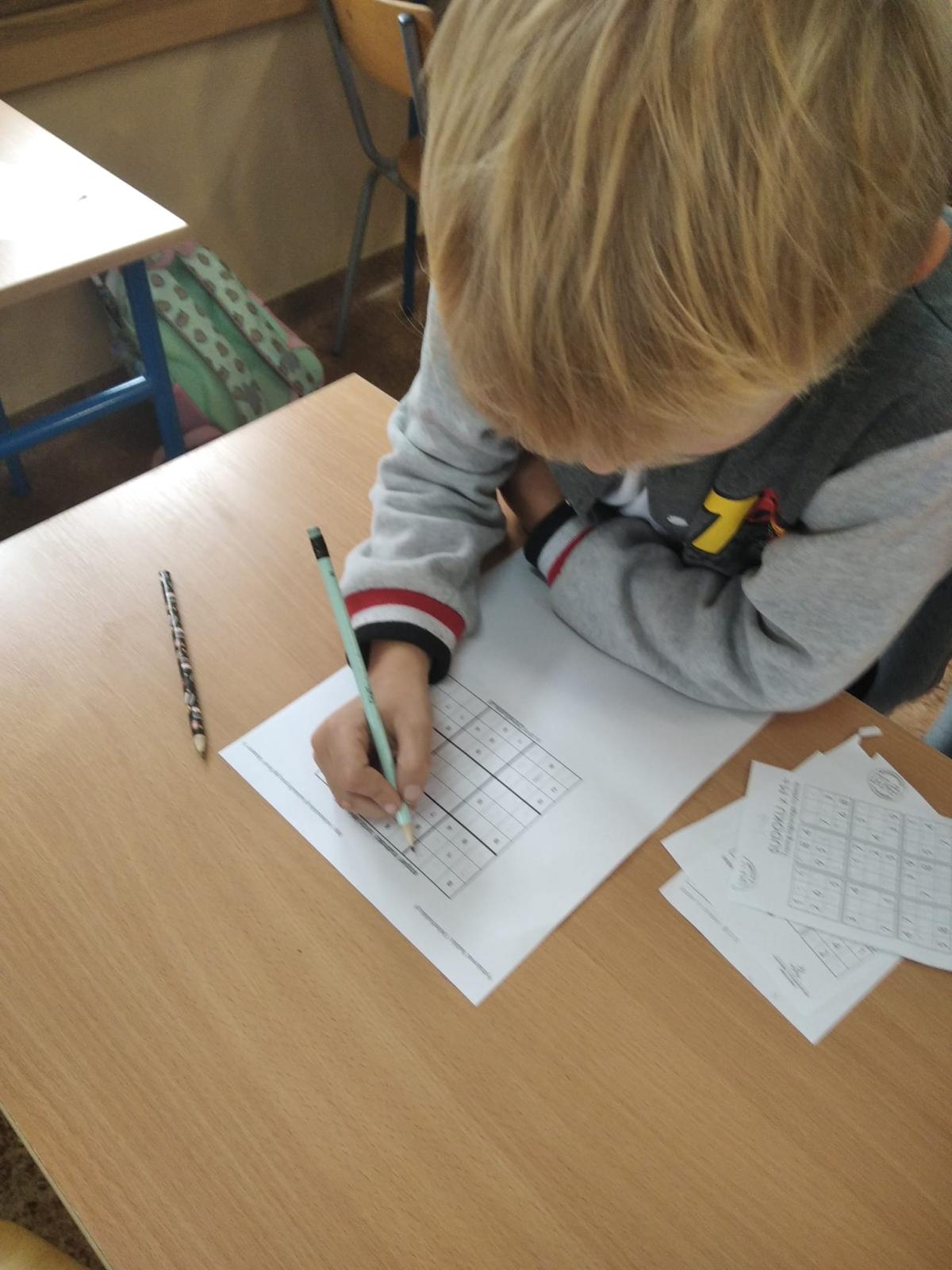 W ramach projektu przez cały rok szkolny 2025/2026 będą realizować różne ciekawe aktywności związane z matematyką. Zaczęliśmy od zabawy w sudoku w związku ze Światowym Dniem Sudoku, który obchodzony jest we wrześniu. Po zapoznaniu się z zasadami Sudoku czwartoklasiści uzupełniali kwadraty liczbami, trenując przy tym spostrzegawczość, logiczne myślenie i cierpliwość.