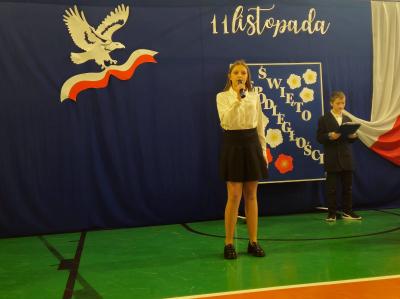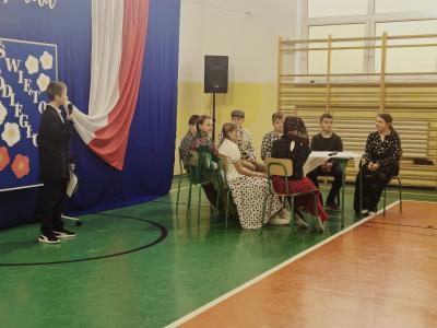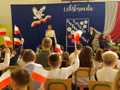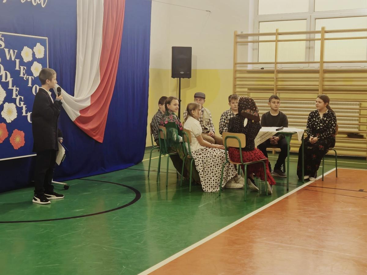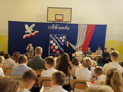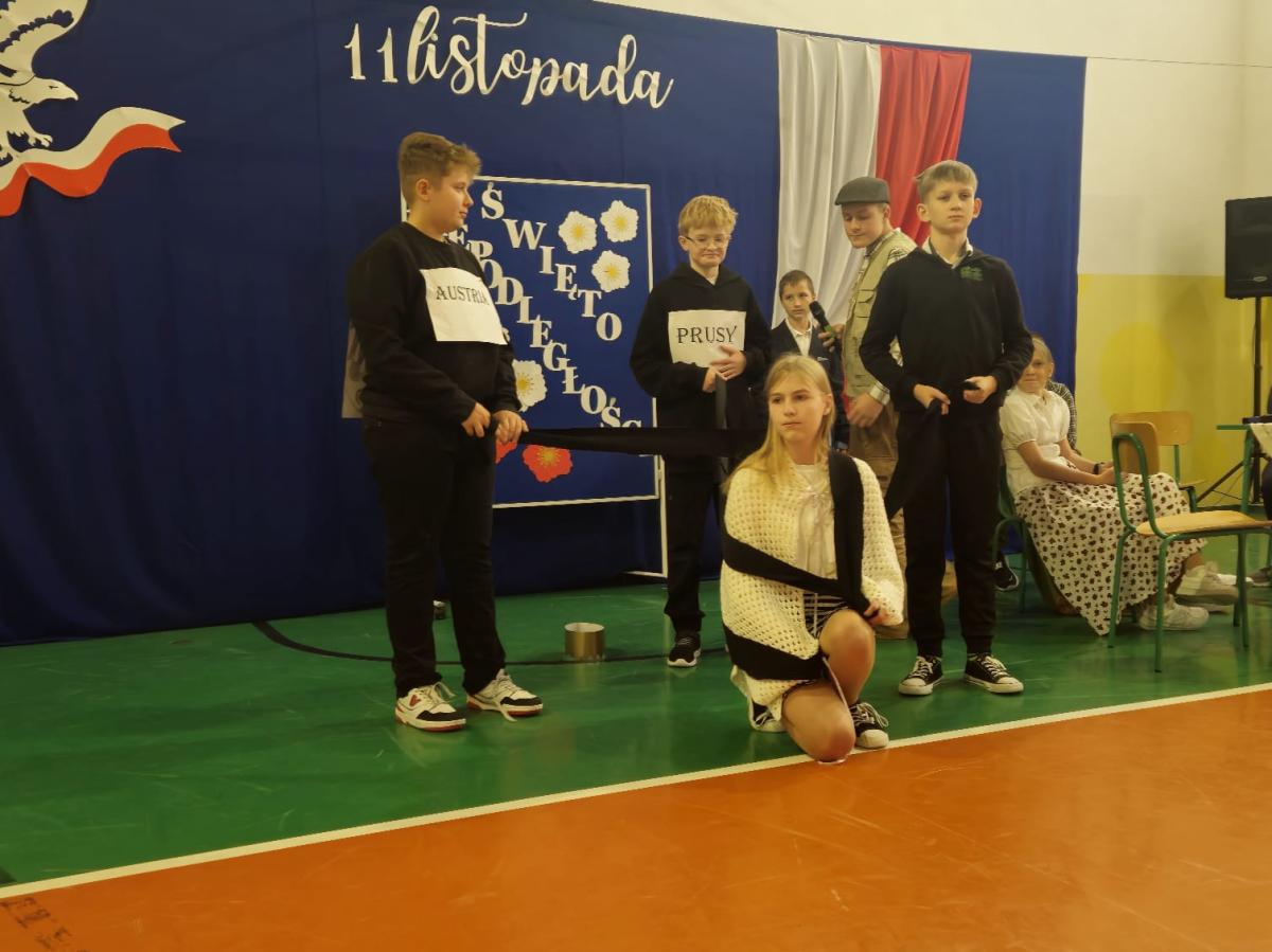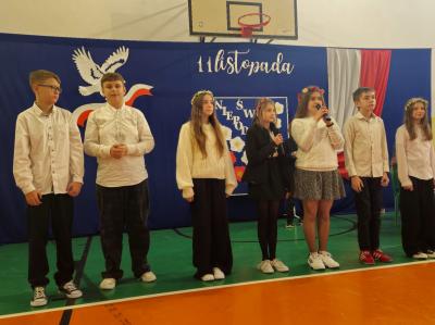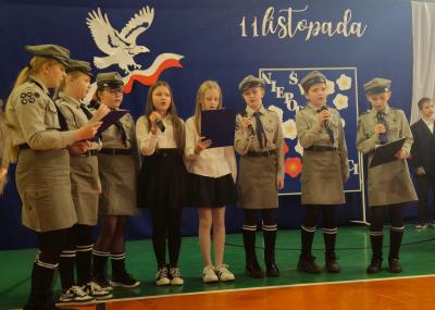 Podczas akademii wystąpił szkolny zespół muzyczny, wykonując pieśni patriotyczne, które wprowadziły wszystkich w podniosły nastrój.
