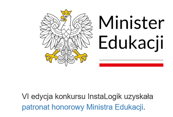 Do drugiego etapu konkursu zakwalifikowało się ośmiu uczniów naszej szkoły: Chryczyk Julia, Owczarkiewicz Kacper, Piszczek Aleksandra oraz Piszczek Jakub z klasy 4, Kamil Wójciak z klasy 5, Kacper Piszczek z klasy 6, Wojciech Błachut i Magdalena Kowalczyk z klasy 8. Jest to konkurs matematyczno-informatyczny dla uczniów zainteresowanych zagadkami logicznymi, matematyką oraz programowaniem. Konkurs organizowany jest przez Placówkę Edukacji Informatyczno-Matematycznej InstaKod oraz Ośrodek Edukacji Informatycznej i Zastosowań Komputerów w Warszawie. Patronami VII edycji tego konkursu są: Minister Edukacji, Ministerstwo Cyfryzacji, Wydział Matematyki, Informatyki i Mechaniki Uniwersytetu Warszawskiego oraz Olimpiada Informatyczna Juniorów.