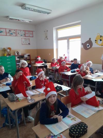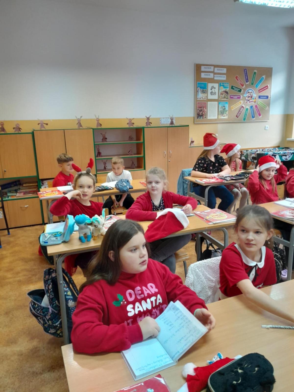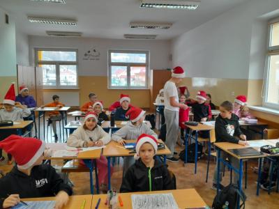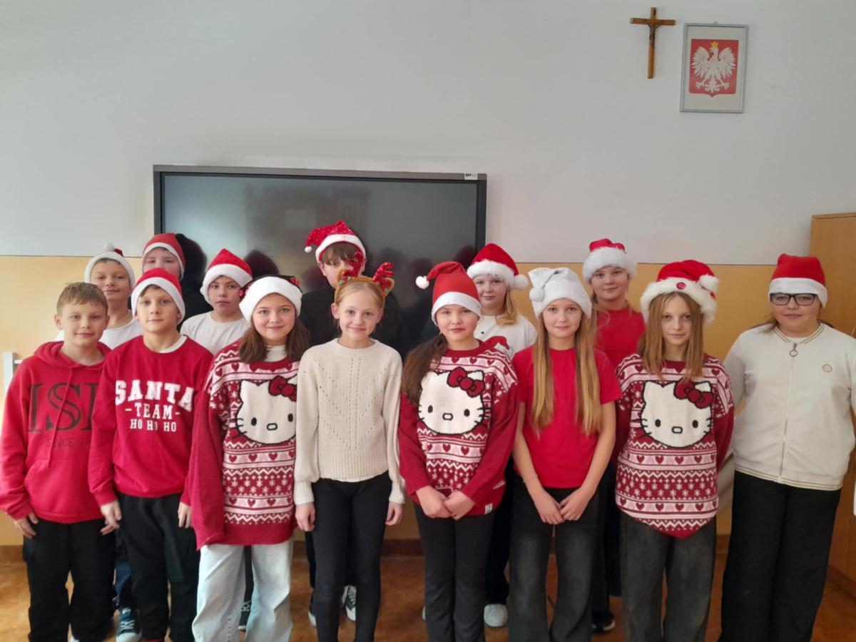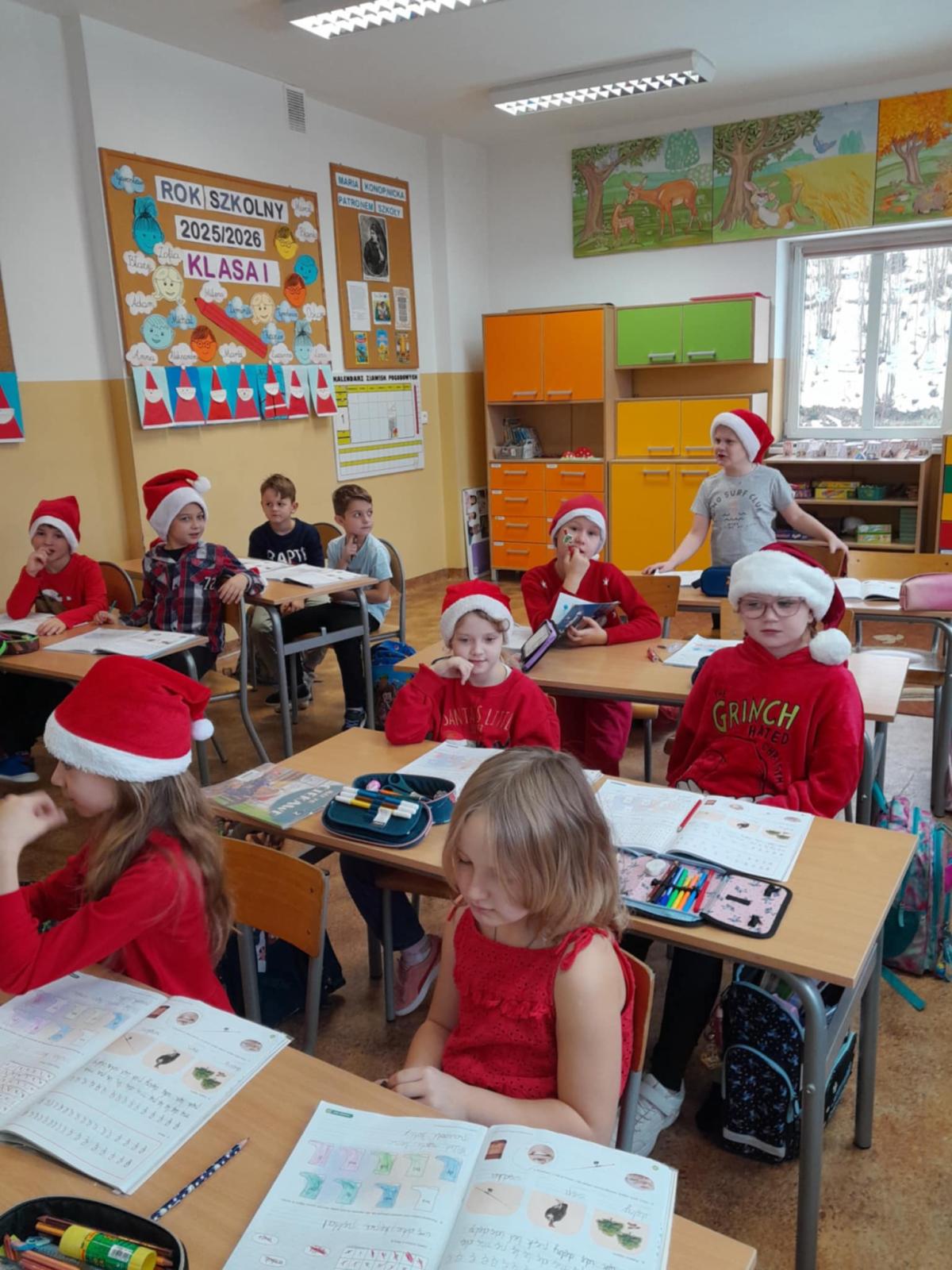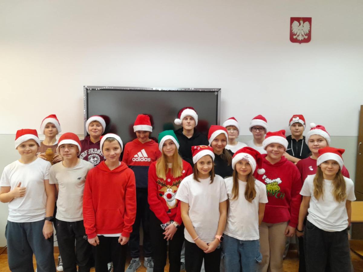 Uczniowie zgodnie stwierdzili, że w czapkach lepiej się myśli… albo przynajmniej wygląda! A w ramach Mikołajek przedstawiciele Samorządu Uczniowskiego poczęstowali wszystkich uczniów i pracowników szkoły słodyczami ufundowanymi przez Radę Rodziców — za co serdecznie dziękujemy!