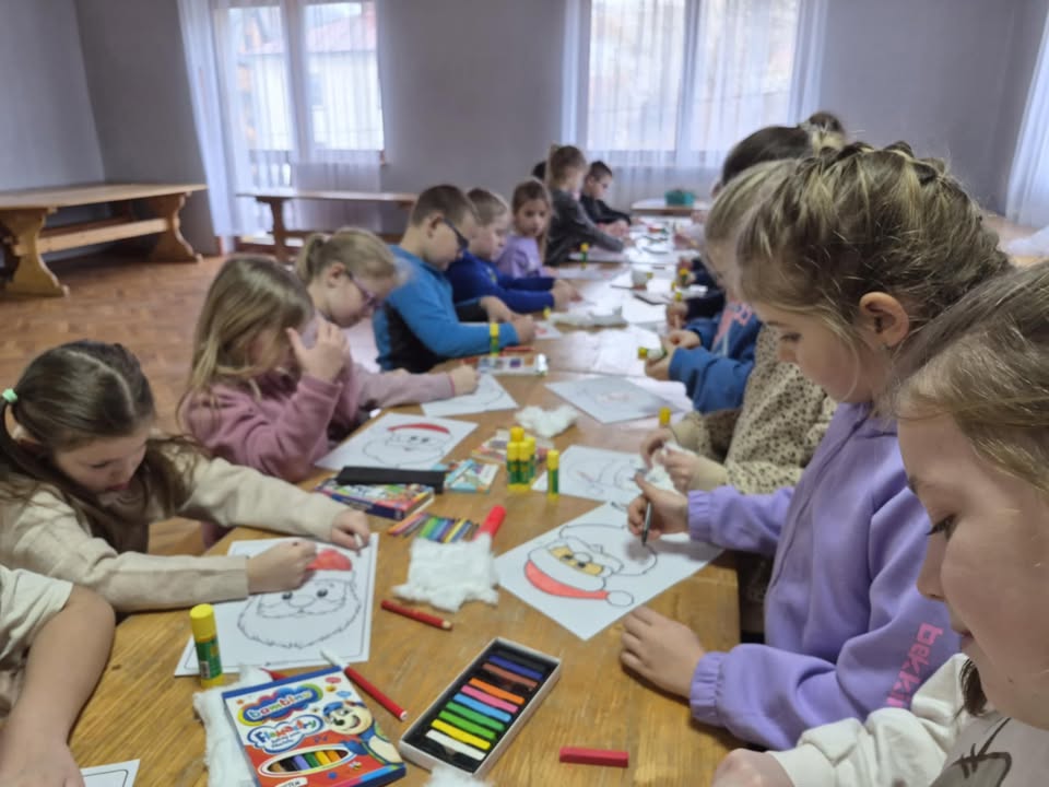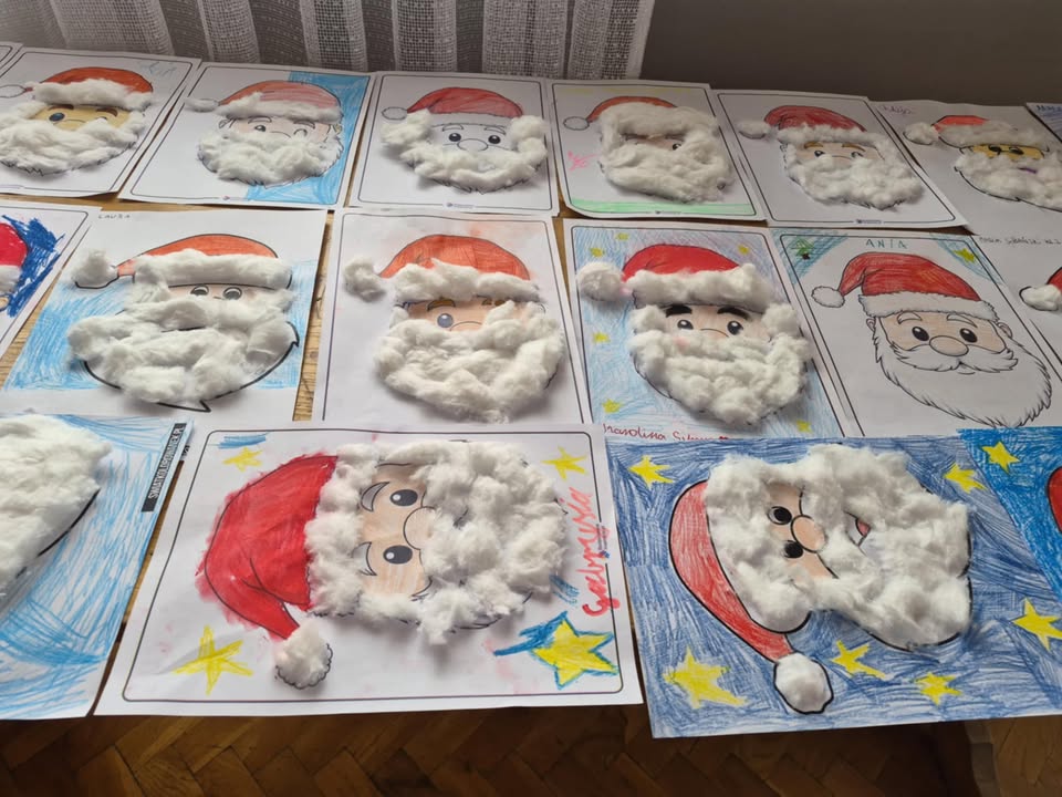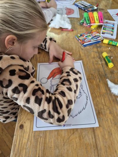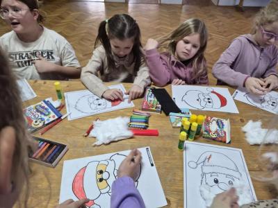 Wizyta związana była z poznaniem tradycji i zwyczajów Świąt Bożego Narodzenia w literaturze. Spotkanie rozpoczęło się od rozmowy o tradycjach świątecznych. Dzieci chętnie dzieliły się tym jak wyglądają święta w ich domach. Opowiadały o ubieraniu choinki i jakie są ich ulubione wigilijne dania. Po rozmowie przyszedł czas na czytanie książek o tematyce świątecznej. Adrian, Szymon, Mateusz, Karolina i Mikołaj z pełnym zaangażowaniem czytali książki z serii Fenek i Franklin. Czytali o przygodach bohaterów, o magii świąt, o Mikołaju o tym jak wiele radości nam to daje. Kolejnym punktem spotkania były zajęcia plastyczne. Dzieci tworzyły własne postacie Mikołajów. Spotkanie zakończyło się wspólnym podziwianiem gotowych prac oraz krótkim podsumowaniem tego czego dowiedzieliśmy się o Świętach. Dzieci wychodziły z Biblioteki uśmiechnięte i obiecały że wkrótce wrócą. Dziękujemy P. Kierownik Biblioteki za zaproszenie.