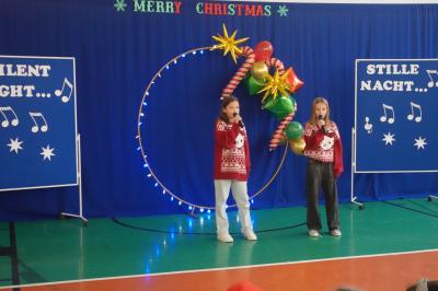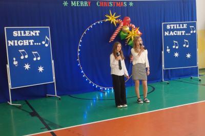 Wszyscy uczestnicy pięknie i z odwagą zaprezentowali przygotowane utwory - prawie wszystkie w języku angielskim. Aneta i Magda z klasy 8 zmierzyły się w tym roku z kolędą w języku niemieckim „Stille Nacht”. Ich piękna interpretacja zrobiła na wszystkich duże wrażenie.