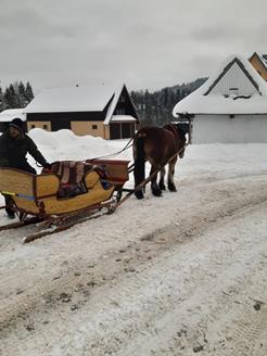 Na koniec wszyscy uczestnicy wsiedli do sań, a konie z kopyta ruszyły w powrotną drogę.