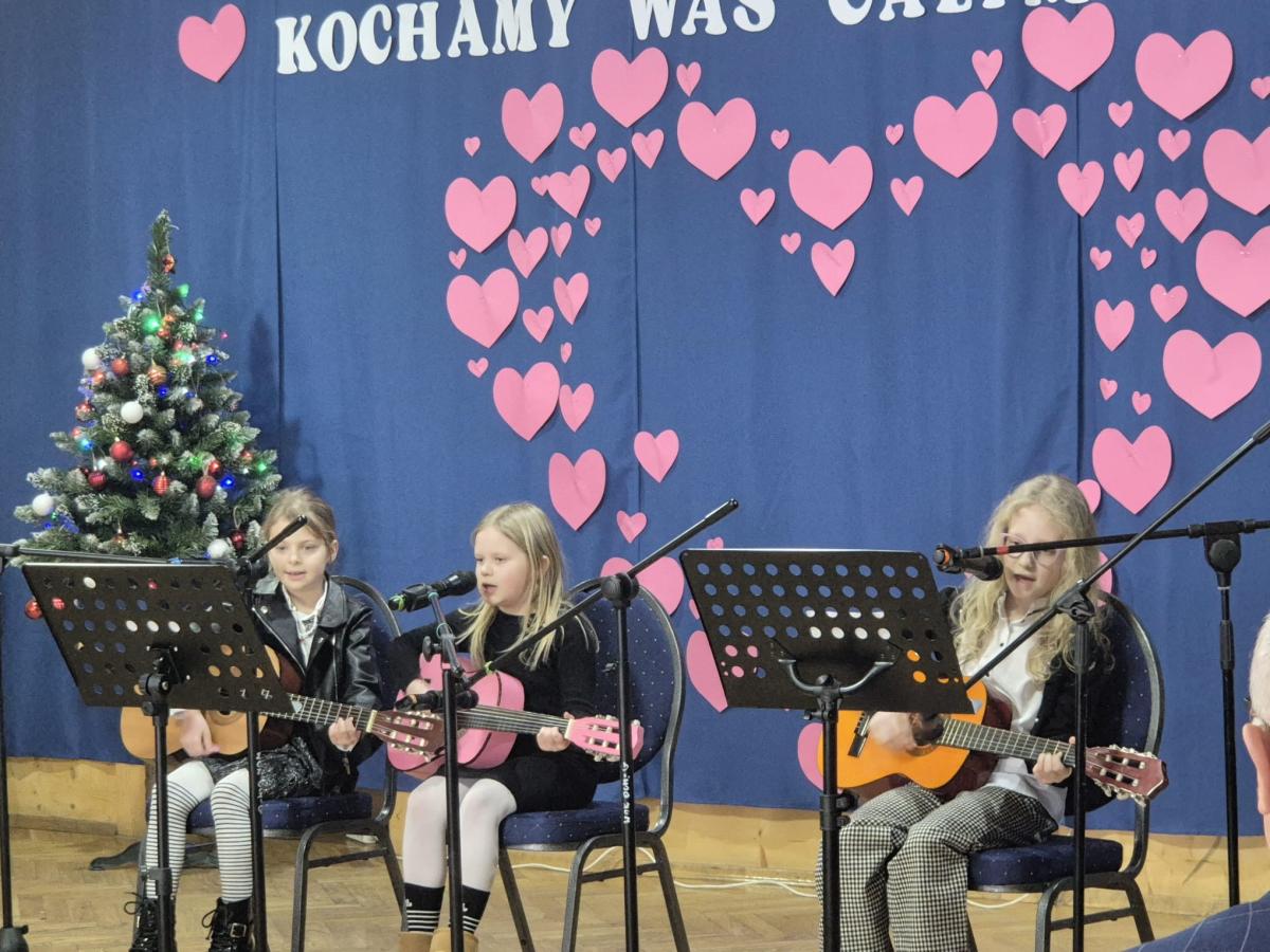 Nasi uczniowie wraz ze swoimi wychowawcami przygotowali piękne życzenia, wiersze, inscenizacje, piosenki oraz kolorowe laurki. Zespół muzyczny naszej szkoły oraz uczestnicy zajęć muzycznych WOK-u zaśpiewali radosne piosenki okolicznościowe i wzruszające kolędy.