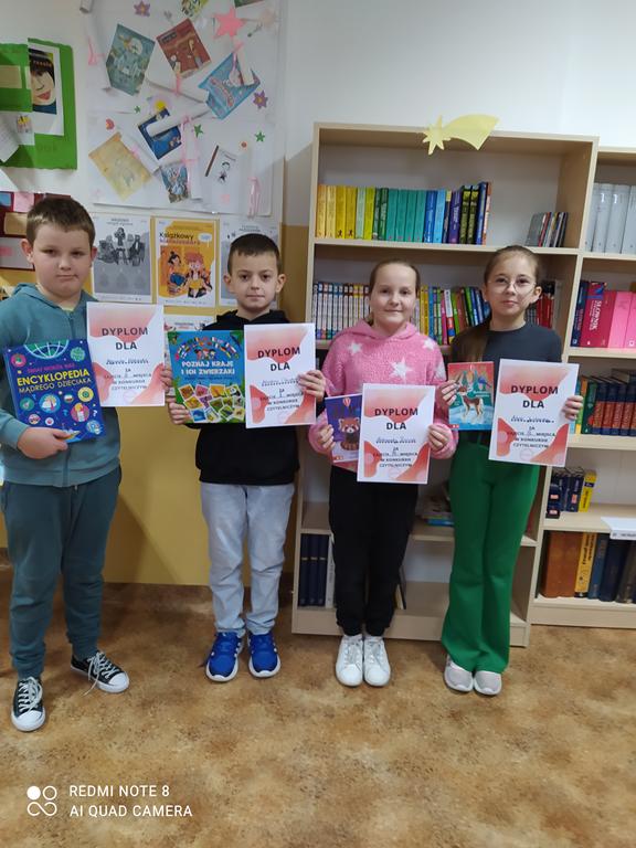 13 grudnia 2021 r. w bibliotece odbył się finał konkursu czytelniczego dla kl. III. Konkurs dotyczył znajomości lektury „Niesamowite przygody dziesięciu skarpetek”. Po I etapie do finału zakwalifikowały się: Gabriela Chlebek, Marcelina Kuziel, Alicja Królczyk, Kinga Królczyk oraz Sabina Królczyk. Po przeprowadzeniu finałowego etapu