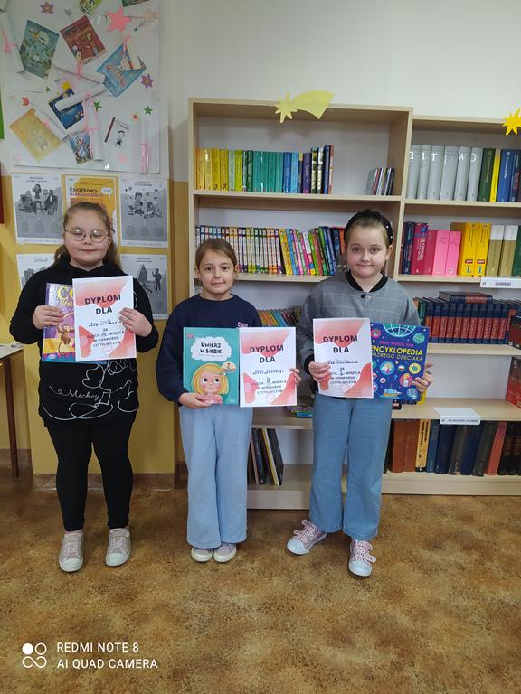 W bibliotece szkolnej przeprowadzone zostały w I półroczu konkursy czytelnicze w klasach II i III. W klasie II ze znajomości dodatkowej lektury "Cukierku ty łobuzie!" I miejsce zdobyła Alicja Bielska, II-Amelia Jamińska, a III - Ania Siuta.